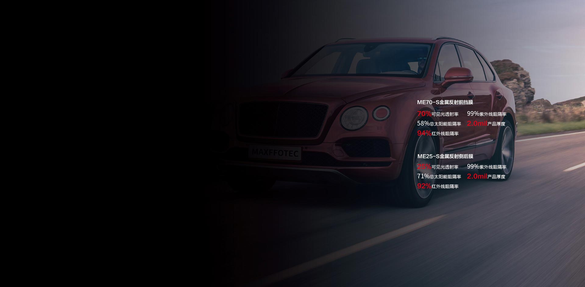 十二層貴金屬,多層磁控濺射技術(shù),環(huán)保節(jié)能,超強(qiáng)隔熱防爆且提升整體車輛質(zhì)感與美觀度,更能有效防止破碎玻璃飛濺對駕駛員的二次傷害。車輛整體更美觀、更高端、更安全。